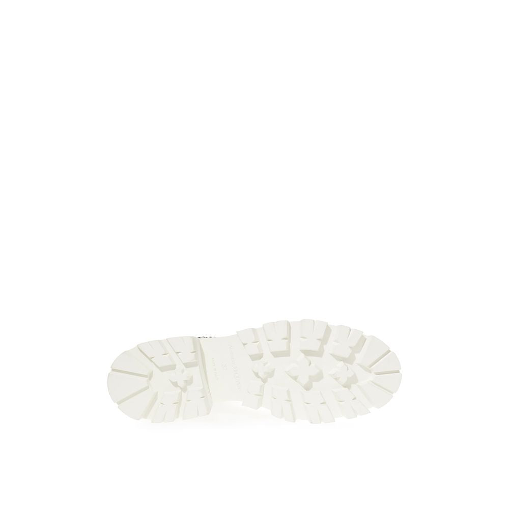 Alexander McQueen brushed leather Chelsea boots in black, tone-on-tone topstitching, contrasting white notched oversized flared sole, layered heel. Back tongue with printed logo, tone on tone elastic bands at sides. Composition: 100% Leather-Sku inside:23AP96-97