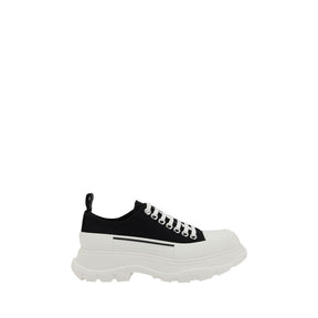 Alexander McQueen’s Cotton Tread Slick Sneakers combine modern design and functionality. The reinforced round toe provides extra protection, while the lace-up closure ensures a secure and adjustable fit. The pull on heel makes it even easier to wear, adding practicality to the model. The contrasting platform sole gives a touch of momentum and originality, while the logoed press stud insole confirms the attention to detail typical of the brand. These sneakers are perfect for those looking for an urban and sophisticated look without sacrificing comfort.