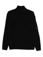 black high neck long sleeves ribbed trims goggle detail C.P. Company suggests removing any detachable accessories before washing. Logo wool turtle-neck sweater