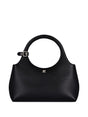 black concealed top-zip fastening circular top handles adjustable detachable shoulder strap Holy leahter handbag Size and Fit - Width 10,24 in / 26 cm Height 11,02 in / 28 cm Depth 9,06 in / 23 cm Handle 7,87 in / 20 cm