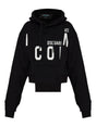 black panelled design drawstring hood logo print long sleeves asymmetric hem cotton Cotton cropped hoodie