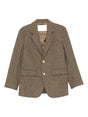 brown houndstooth pattern gold-tone buttons notched lapels sbutton closure flap pockets Wool blend single-breasted jacket