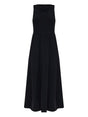 black crew neck flared hem side slit pockets sleeveless Sleeveless long dress