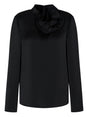 black high neck ruffled neckline long sleeves satin finish Ruffled neckline sweater