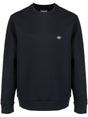 navy blue cotton ribbed detailing logo patch at the chest round neck long sleeves Cotton crewneck sweatshirt