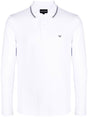 white stretch-cotton contrasting trim polo collar long sleeves Logo cotton polo shirt