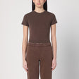 Brown cotton cropped crew neck T-shirt by Entire Studios, characterized by short sleeves and a fitted fit. Size and Fit - Model wears size S Model measurements: Height: 179 cm Chest: 82 cm Waist: 65 cm Hips: 90 cm