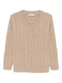 brown cable-knit floral detail v-neck long sleeves V-necked sweater