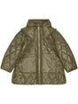 green recycled polyester quilted zip fastening classic hood long sleeves two front patch pockets straight hem This item is made from at least 50% recycled or upcycled materials. For recycled synthetic clothing products, we highly recommend using a microfibre-catching washing bag to ensure that no microplastics that can pollute water are released in the process. Learn more about what makes a product Conscious on our Conscious Criteria page Quilted short jacket Size and Fit - This piece fits true to size. We recommend you get your regular size. Model is 1,75m / 5ft 8in wearing size S