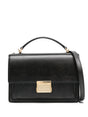 black push-lock fastening foldover top single top handle adjustable detachable shoulder strap Venezia leather handbag Size and Fit - Width 22 cm, Height 15 cm, Depth 9 cm, Handle 10 cm, Shoulder strap 100 cm