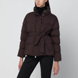 Herno jacket in brown lightweight stretch nylon 2-layer Gore-Tex, water-repellent, windproof, and breathable, featuring high collar, waist-defining belt, regular fit, down padding, flap pockets with snap buttons, Laminar logo on the back, and zip and snap-button closure. Size and Fit - Model wears size S Model measurements: Height: 178 cm Chest: 83 cm Waist: 63 cm Hips: 91 cm