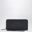 Marc Jacobs black full-grain leather wallet featuring top zip closure, twelve internal card slots, two external pockets, one bill compartment, one internal zip coin pocket, embossed front logo, and removable wrist strap. Size and Fit - Width 20 cm x Height 10 cm x Depth 2 cm