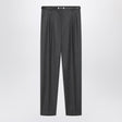 Dark grey wool trousers by Max Mara Studio, featuring pleats, belt loops, front zip and button closure, and a matching belt at the waist. Size and Fit - Model wears size 40 IT Model measurements: Height: 178 cm Chest: 83 cm Waist: 63 cm Hips: 91 cm