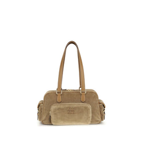 The Corduroy Shoulder Bag by Miu Miu combines retro charm and modern functionality, reinterpreting the classic Pocket satchel design. Nappa leather handles allow for comfortable carrying, while front and back zippered pockets and side flap and buckle pockets offer practicality. Golden hardware, a fabric interior with zippered pocket and leather lettering logo on the pocket complete the design for a distinctive and versatile accessory.