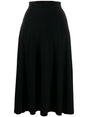 Black flared midi skirt from Norma Kamali featuring a high waist. Flared jersey skirt