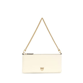 The leather Shoulder Bag by Pinko features an elegant monochrome design with a top zipper closure and single internal compartment, embellished on the front with the brand’s iconic contrasting logo and completed with a refined chain handle.