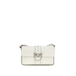 The Love One Shoulder Bag by Pinko in smooth calf leather features a rectangular shape, flap and magnetic button closure, and removable, interchangeable leather and chain straps. Details include a Love Birds buckle, logo plaque, and leather trims, while the interior with pocket and customized lining ensures practicality.