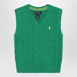 Polo Ralph Lauren bright green cotton vest, featuring cable-knit design, V-neck, embroidered logo on the chest, and ribbed edges.