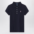Polo Ralph Lauren navy blue cotton polo shirt, featuring embroidered logo on the chest, front buttons, and short sleeves.