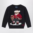 Polo Ralph Lauren navy blue cotton sweater featuring front Polo Bear embroidery, crew neck, long sleeves, ribbed cuffs and hem.