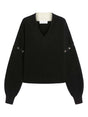 ribbed knit V-neck wool sweater