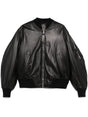 black front zip fastening two side welt pockets sleeve zip pocket ribbed cuffs and hem Leather bomber jacket Size and Fit - This piece fits true to size. We recommend you get your regular size. Model is 1,75m / 5ft 8in wearing size 40 (IT)